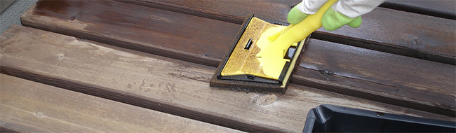 - *変色や汚れが目立つ木材に対しましては、AURO Nr.801(ウッドデッキクリーナー)を用い、塗装前に塗装表面を洗浄してください。
