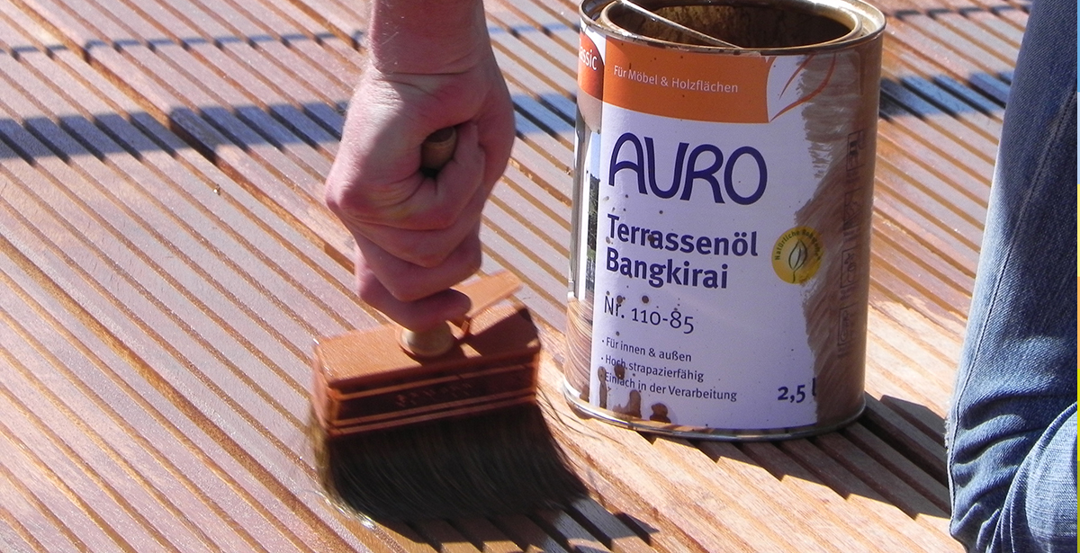 天然成分のみでできた屋外用木材保護オイルです。ウッドデッキやログハウス、イスなどを高い耐久性で雨・風などから守ります。材料費の目安:約800円/m2 (2回塗り施工) - AURO Nr.930(=130)