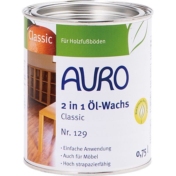 施工性・安全性・経済性のバランスがとれた弊社で人気No.1の自然塗料・ベースワックス。溶剤フリーだから溶剤からのVOC放散なし。材料費の目安:約520円/m2(1回塗り施工) - AURO Nr.129