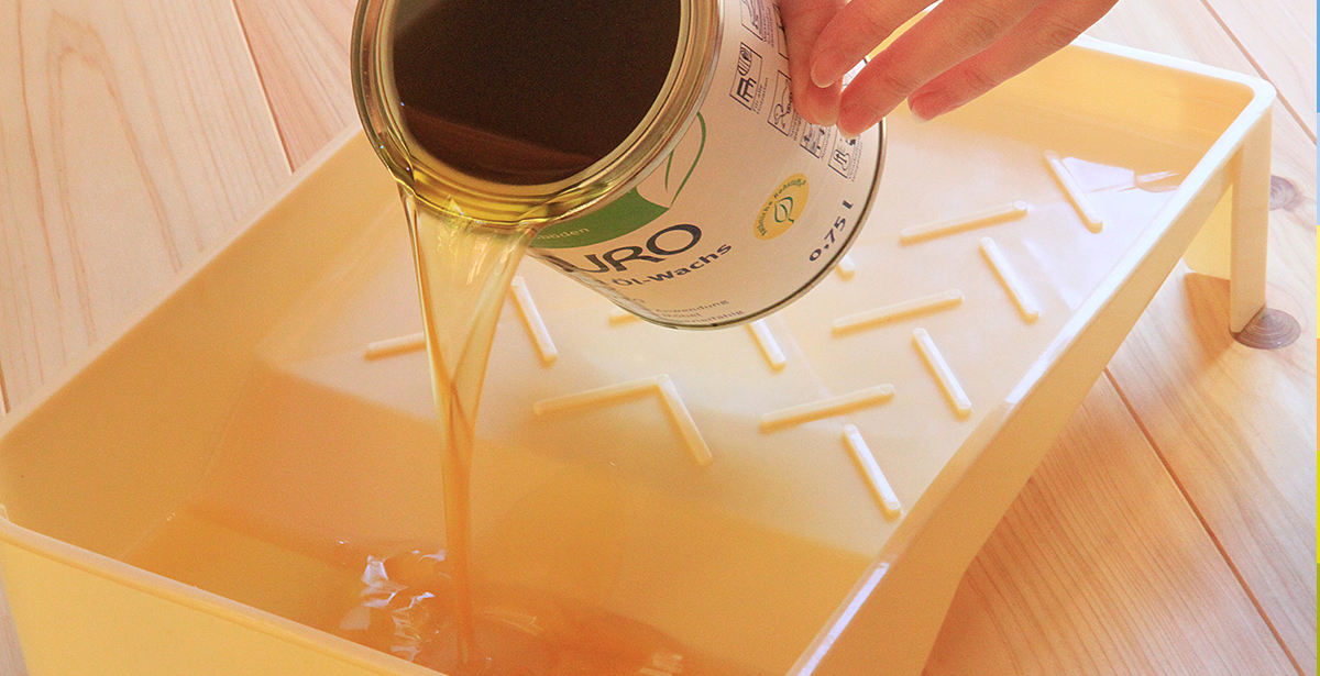 サーっと塗れて便利 - AURO(アウロ)社のNr.129は天然成分だけで造られた正真正銘の天然ワックス(自然塗料)です。ハケやローラー、コテバケ等を使って塗ることが可能です。塗装時オレンジオイルの香りを放ち、乾燥後は亜麻仁油特有の香りが残りますが徐々に無臭となります。乾燥時間が長さが気になるところですが、それは「自然塗料の証」。何十年も過ごす空間、僅かな乾燥時間の差で健康を犠牲にするような製品を選ばないようにしましょう。