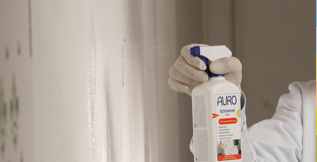スプレーするだけでカビの発生を予防する商品。透湿性のある壁や床、木材などに散布可能なため建築用途でも活躍。 - AURO Nr.654