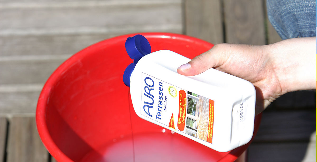 ウッドデッキ専用の洗浄剤。含有の天然成分は全て微生物によって分解されるため、周囲の植物や土壌に対しても安心です。さらに高濃縮タイプだから経済的です。 - AURO Nr.473