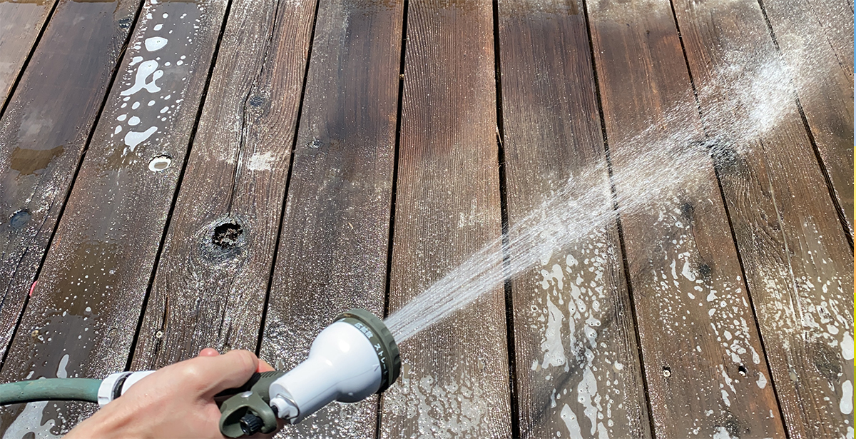 最後にウッドデッキをきれいな水で十分すすぎ、乾燥したら清掃完了です。